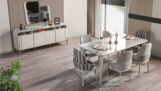 Bahar Yemek Odası - Sis Gri - Gümüş