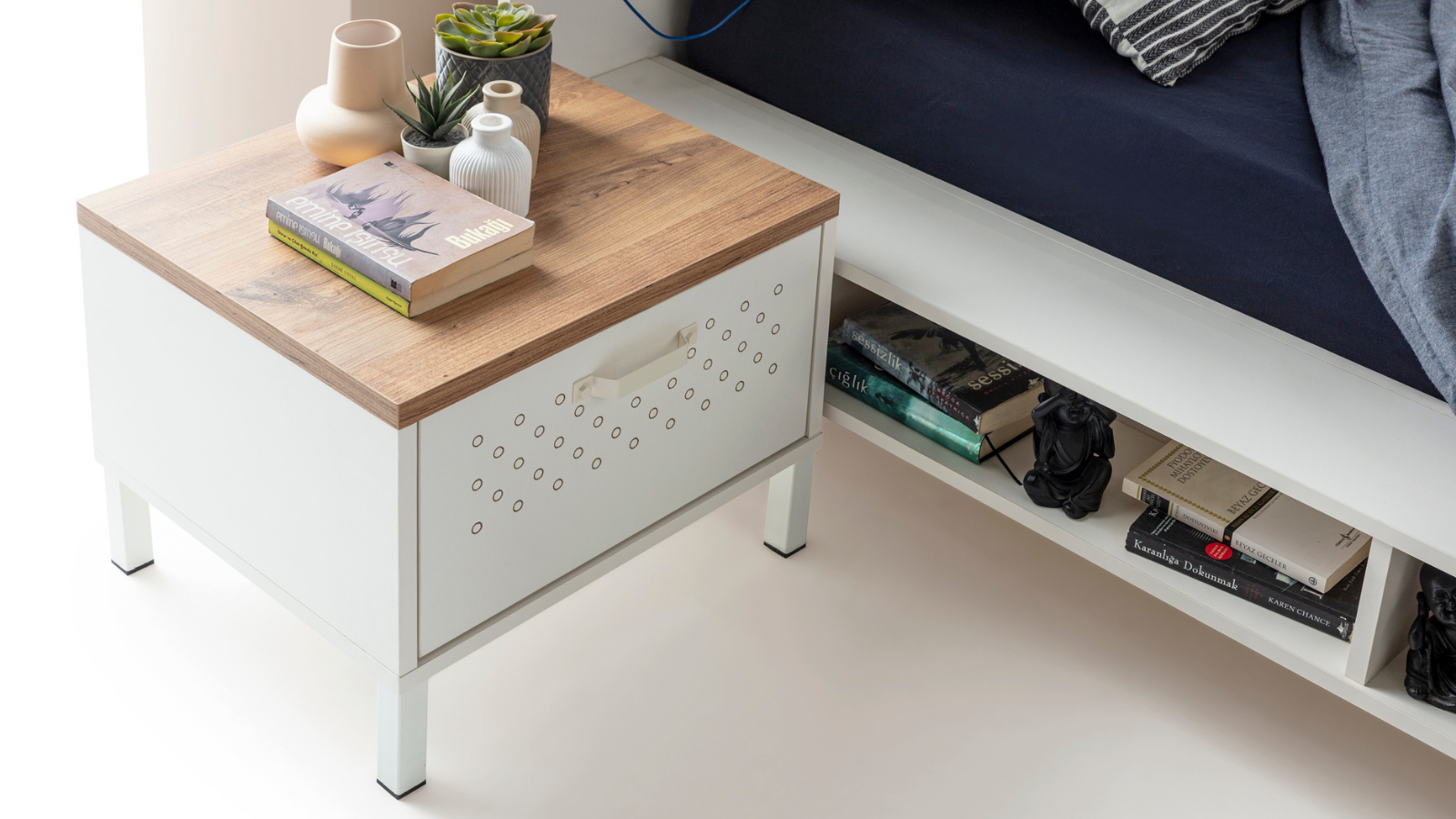 Çisa Genç Odası Komidin: Pratik kullanımıyla yatağın hemen yanında ihtiyaç duyulan her şeye anında ulaşım sağlar. Şık ve işlevsel tasarımı ile odada mükemmel bir denge kurar.