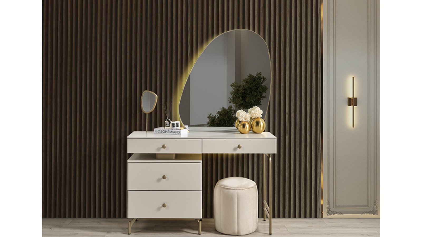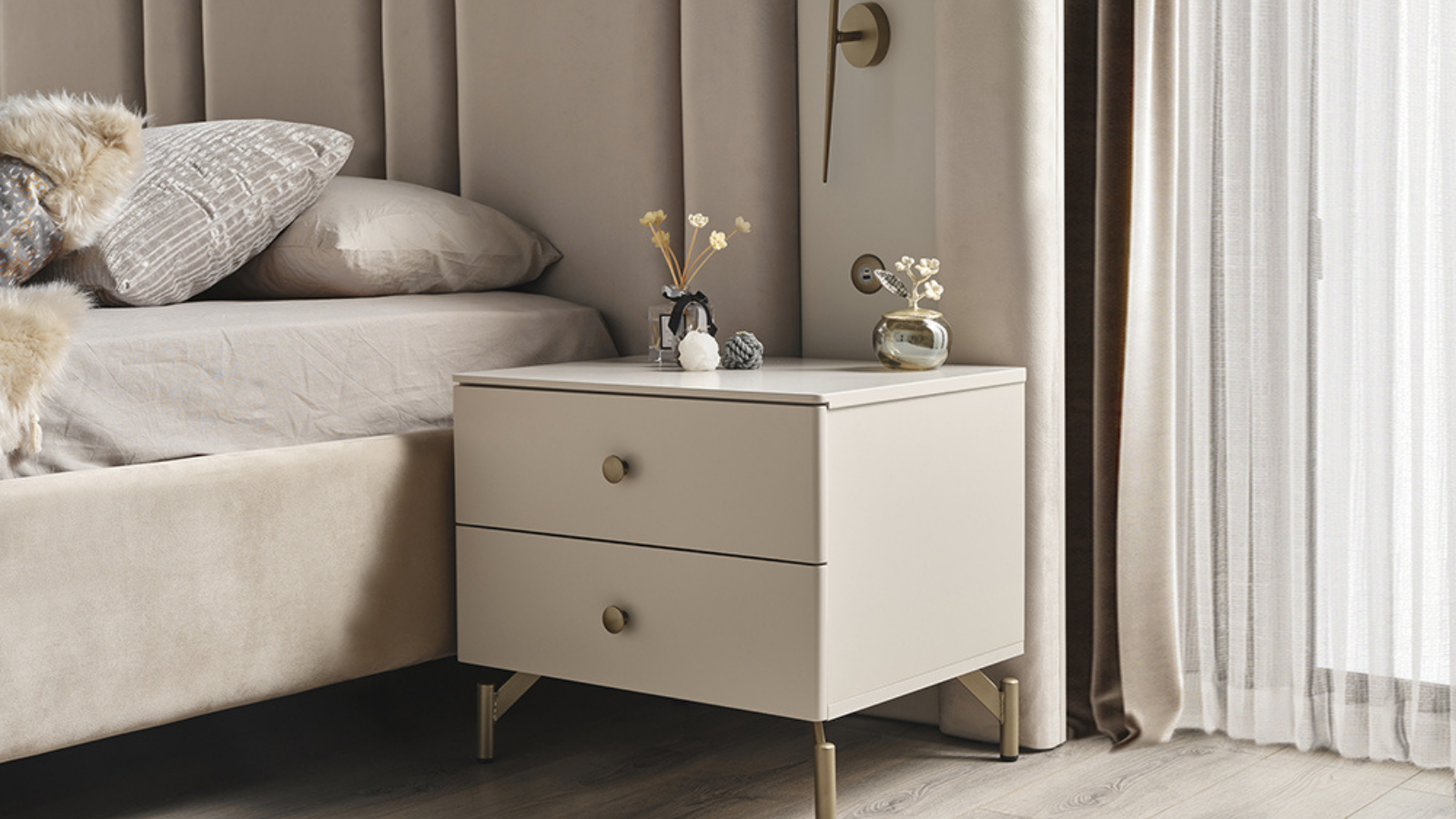 Komidin ve şifoniyer ayakları, doğal güzelliğiyle gürgen ağacından üretilmiştir. Bu doğal malzeme, yatak odasına sıcak bir atmosfer ve dayanıklılık katıyor.