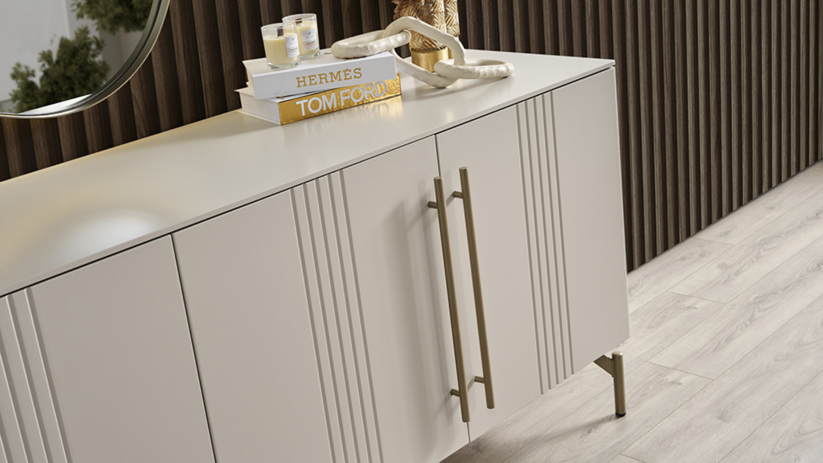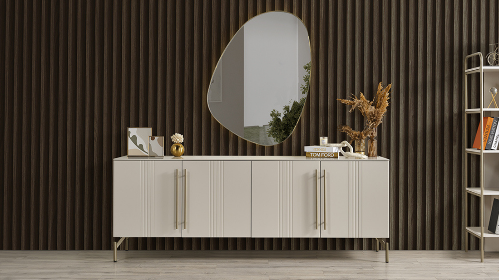 EVA Yemek Odası, şıklığının yanı sıra fonksiyonelliği de ön planda tutuyor. Konsol ve duvar aksesuar ayna, kullanışlı depolama alanları sağlayarak ev düzeninize katkıda bulunur. Şık detaylar ve bronz detaylarla buluşan lüks tasarımı, yemek alanlarınıza sofistike bir hava katıyor.