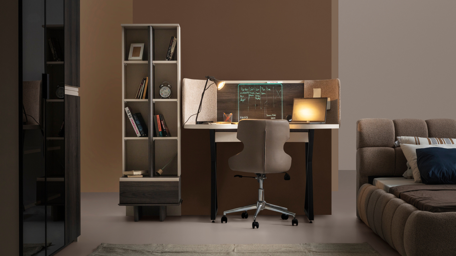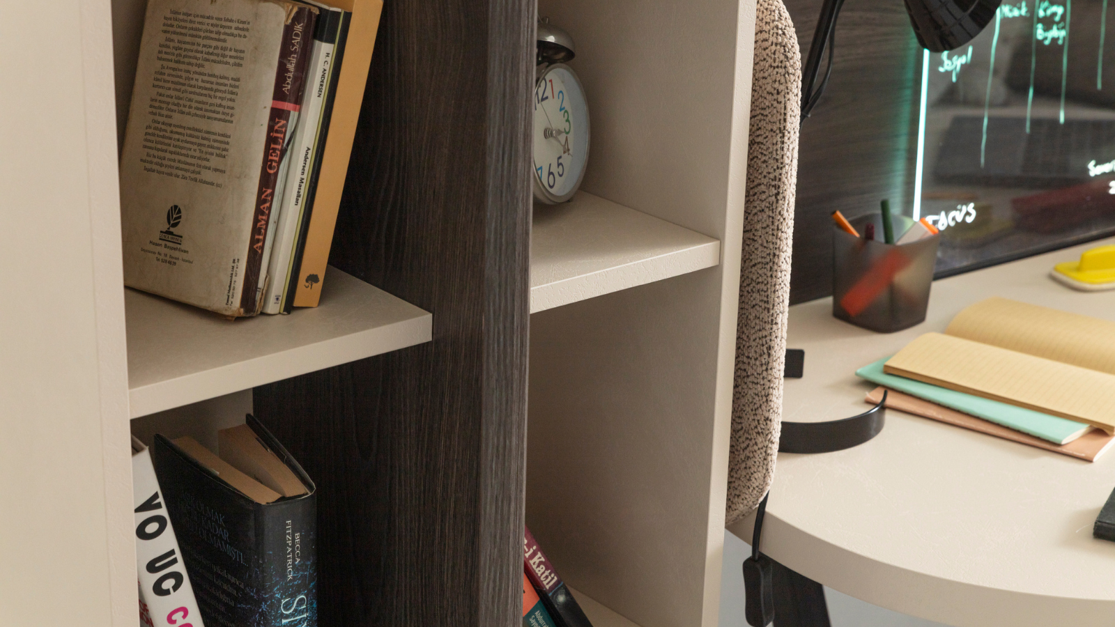- Focus Genç Odası Kitaplık: Kitaplar, dekoratif eşyalar ve kişisel eşyalar için ideal bir saklama alanı sunan kitaplık, saklanmanın korunmasına yardımcı olur. Modern tasarımıyla gençlerin tarzına hitap eder.