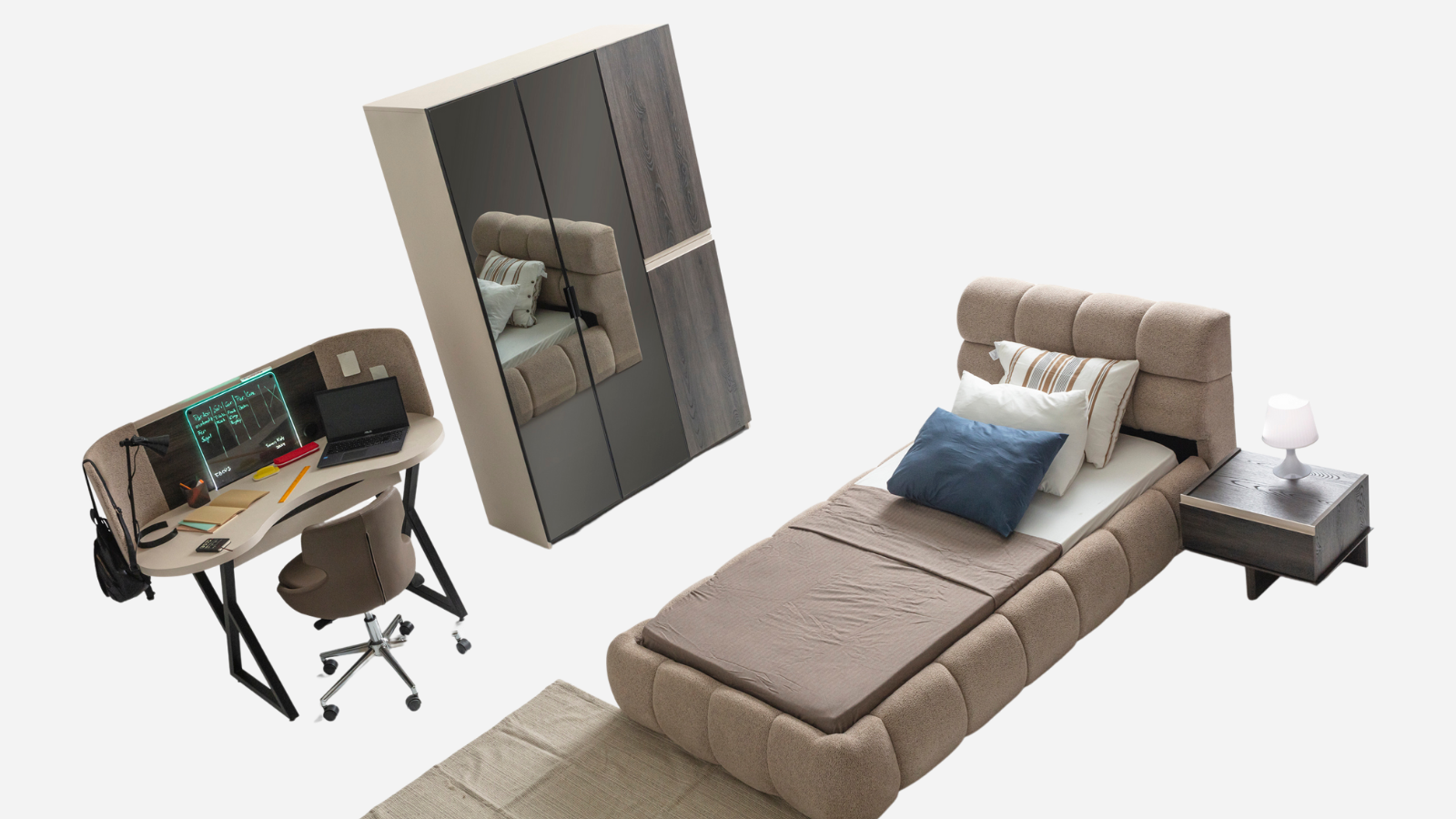 - Focus Genç Odası Karyola: Rahat bir uyku sistemi sunan karyola, sağlam yapısı ve estetik görünümüyle dikkat çeker. Minimalist tasarımıyla çalışma tarzını yükseltir.