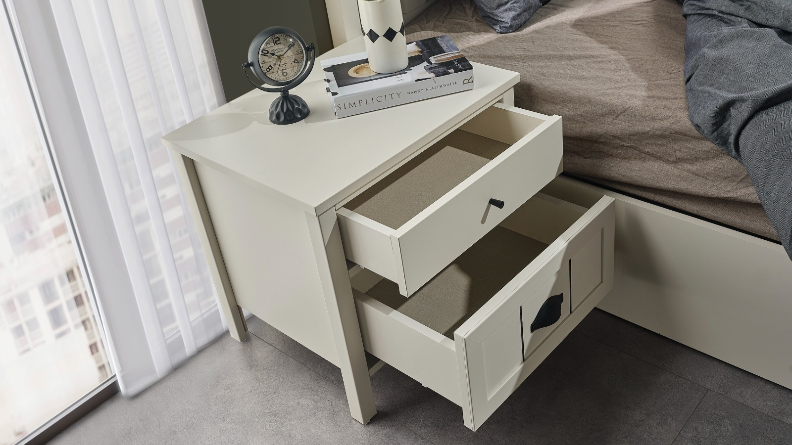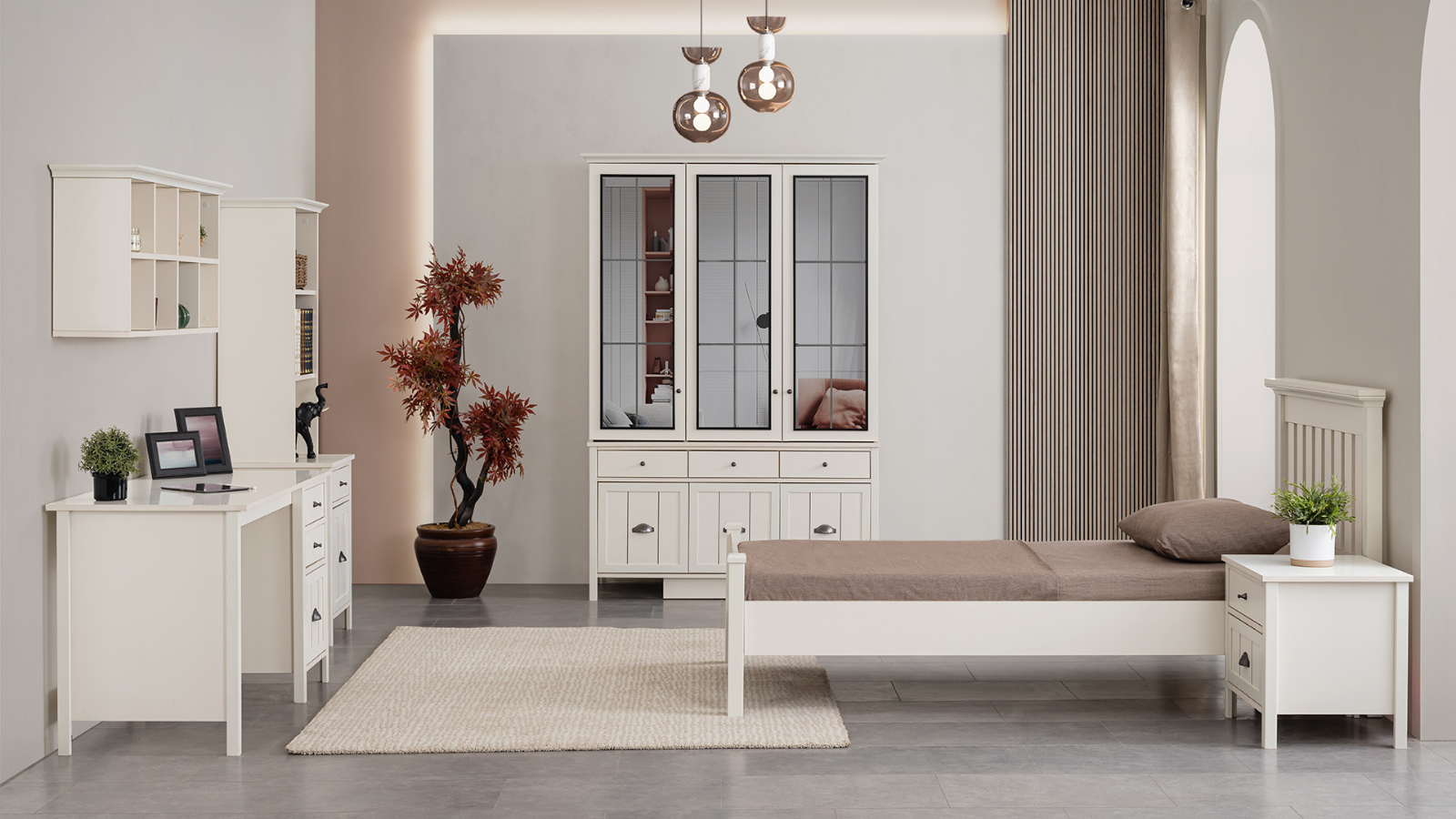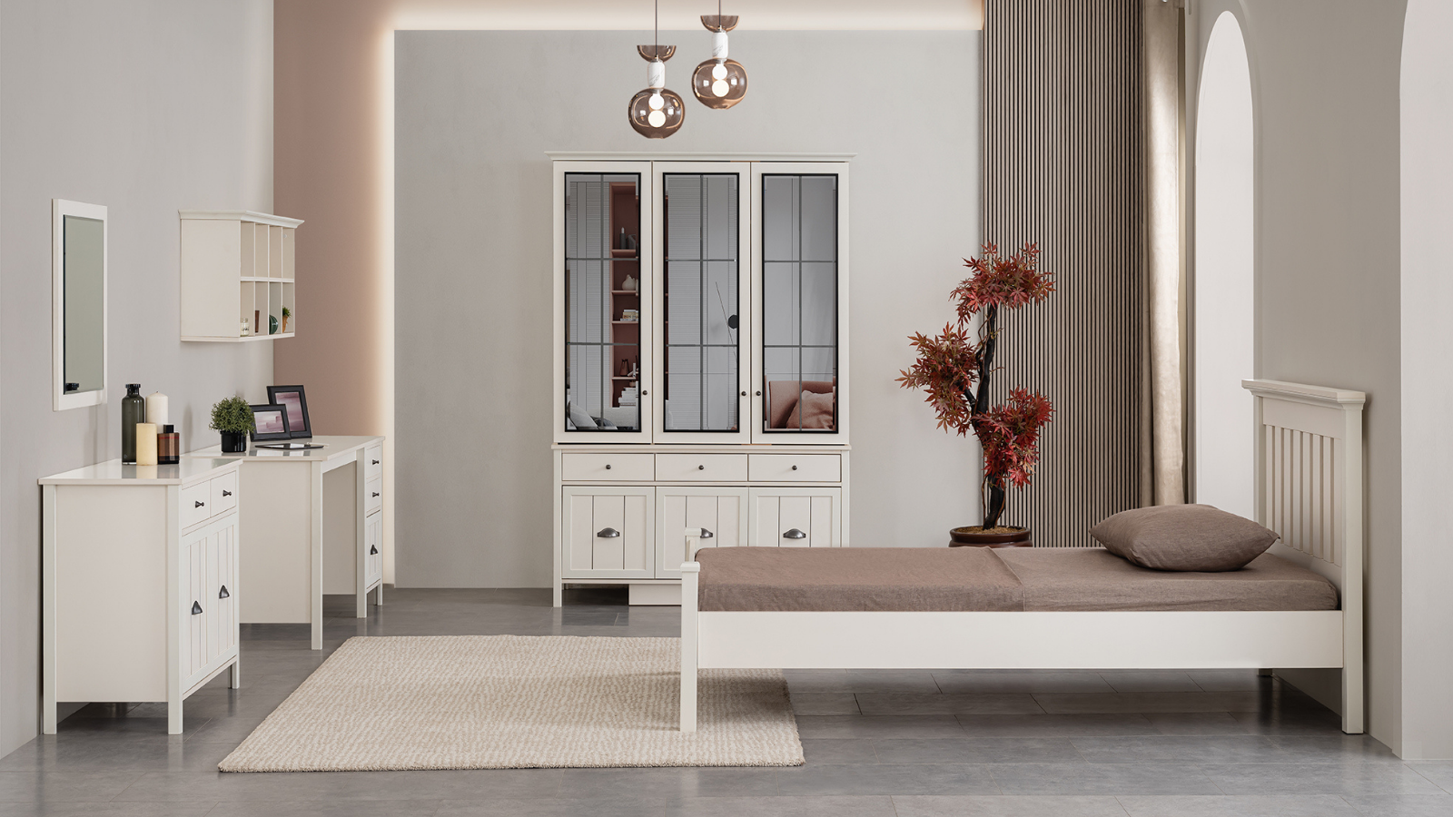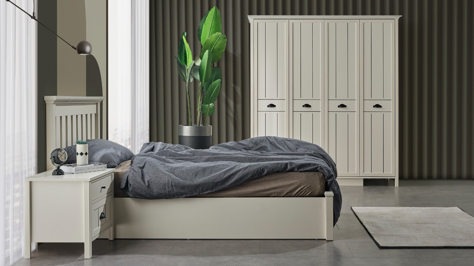 - Karyola: Rahat bir uyku deneyimi sunan karyola, sağlam yapısı ve estetik görünümüyle dikkat çeker. Minimalist tasarımıyla çalışma tarzını yükseltir.