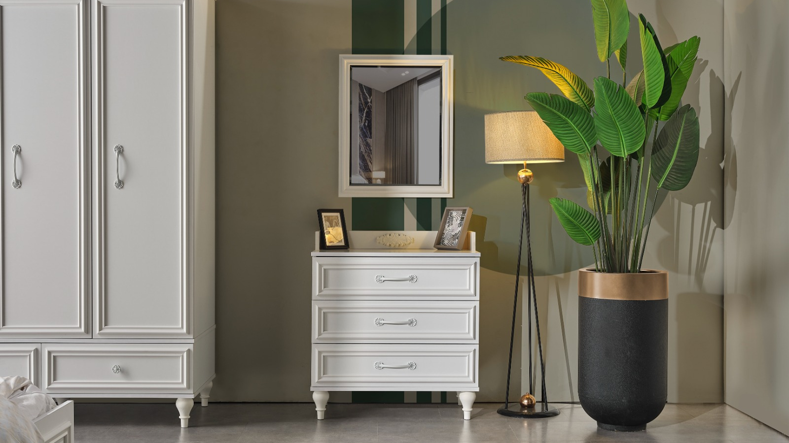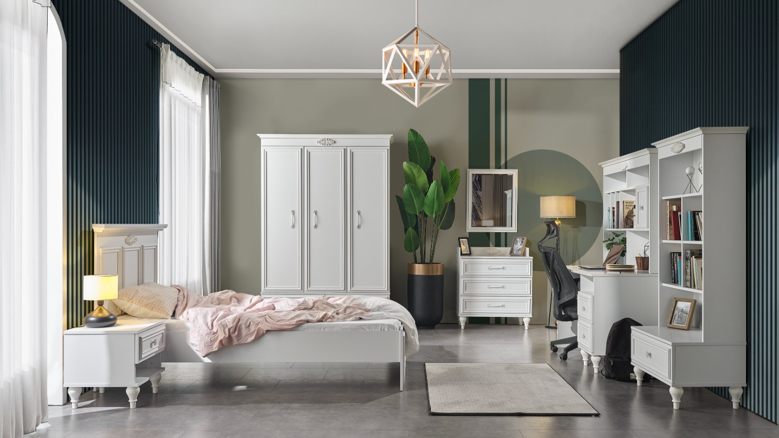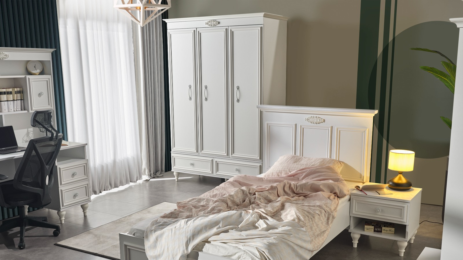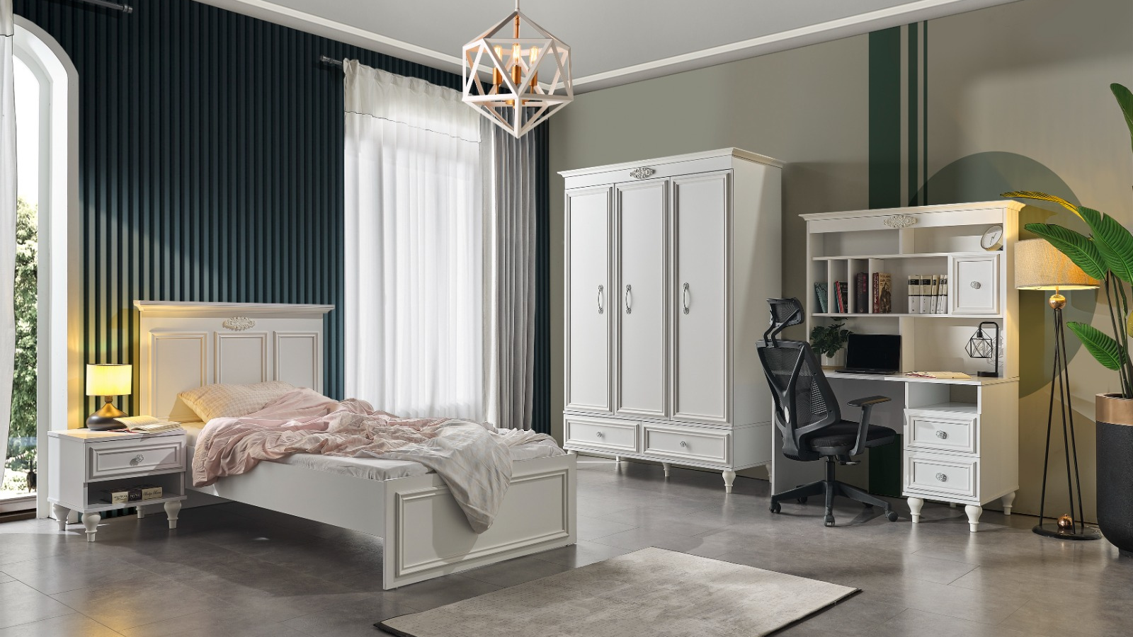 - İskenderiye Genç Odası Çamaşırlık: Geniş çekmeceleri ile ek depolama alanı sunan çamaşırlık, hem işlevsel hem de dekoratif bir üründür. Odada zarif bir görünüm sağlar.