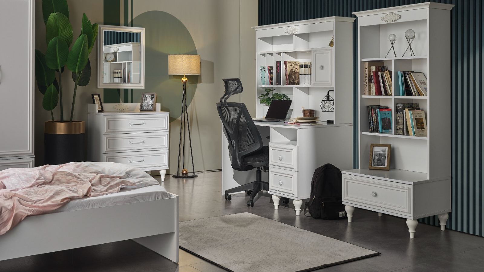 - İskenderiye Genç Odası Çalışma Masası: Ergonomik tasarımı ile gençlerin ders çalışırken veya bilgisayar kullanırken konforlu bir ortam sağlar. Geniş yüzeyi ve düzenleyici bölmeleri ile fonksiyonellik sunar.