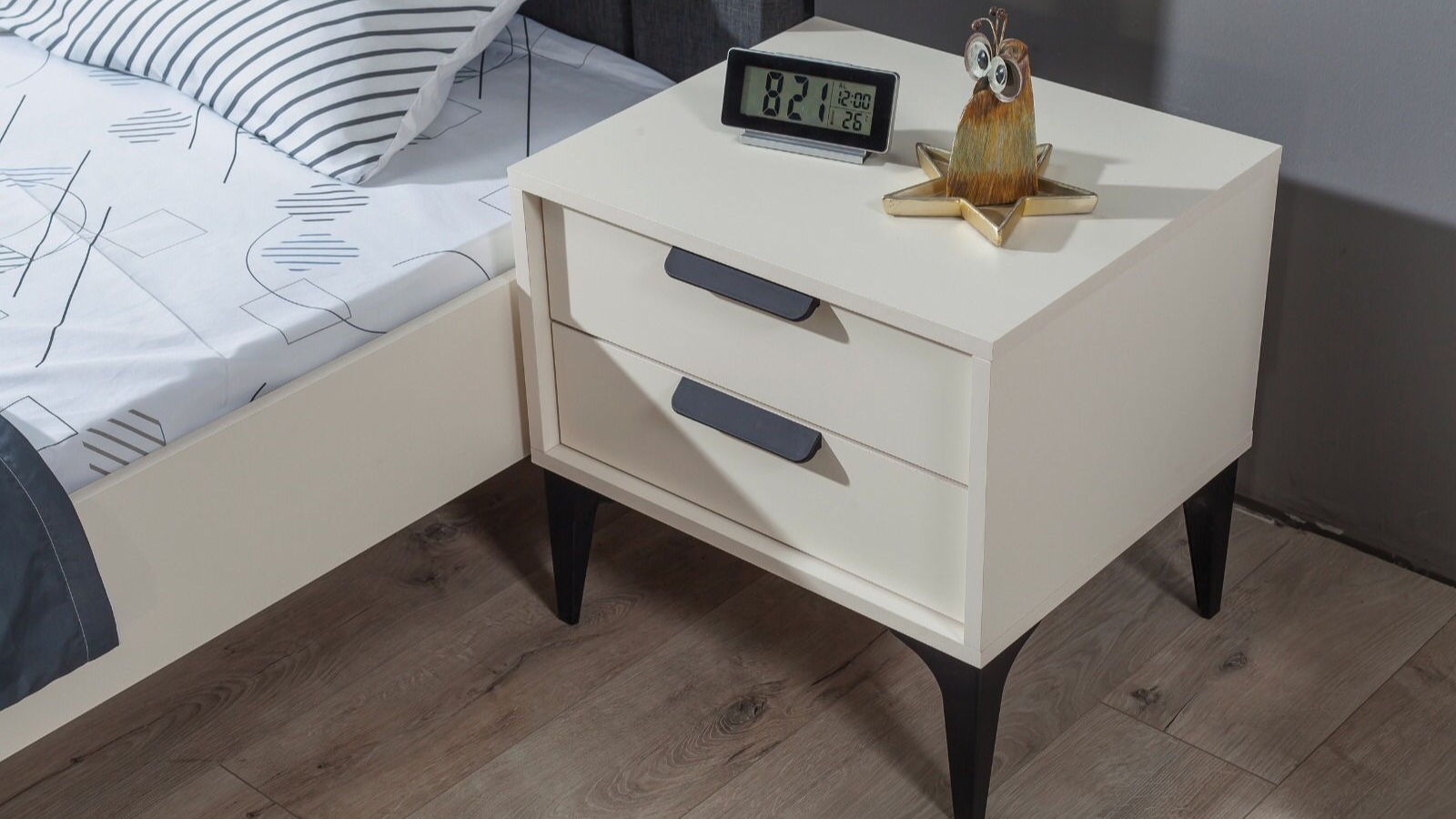 Kolezyum AY Genç Odası Komidin: Pratik kullanımıyla yatağın hemen yanında ihtiyaç duyulan her şeye anında ulaşım sağlar. Şık ve işlevsel tasarımı ile odada mükemmel bir denge kurar.