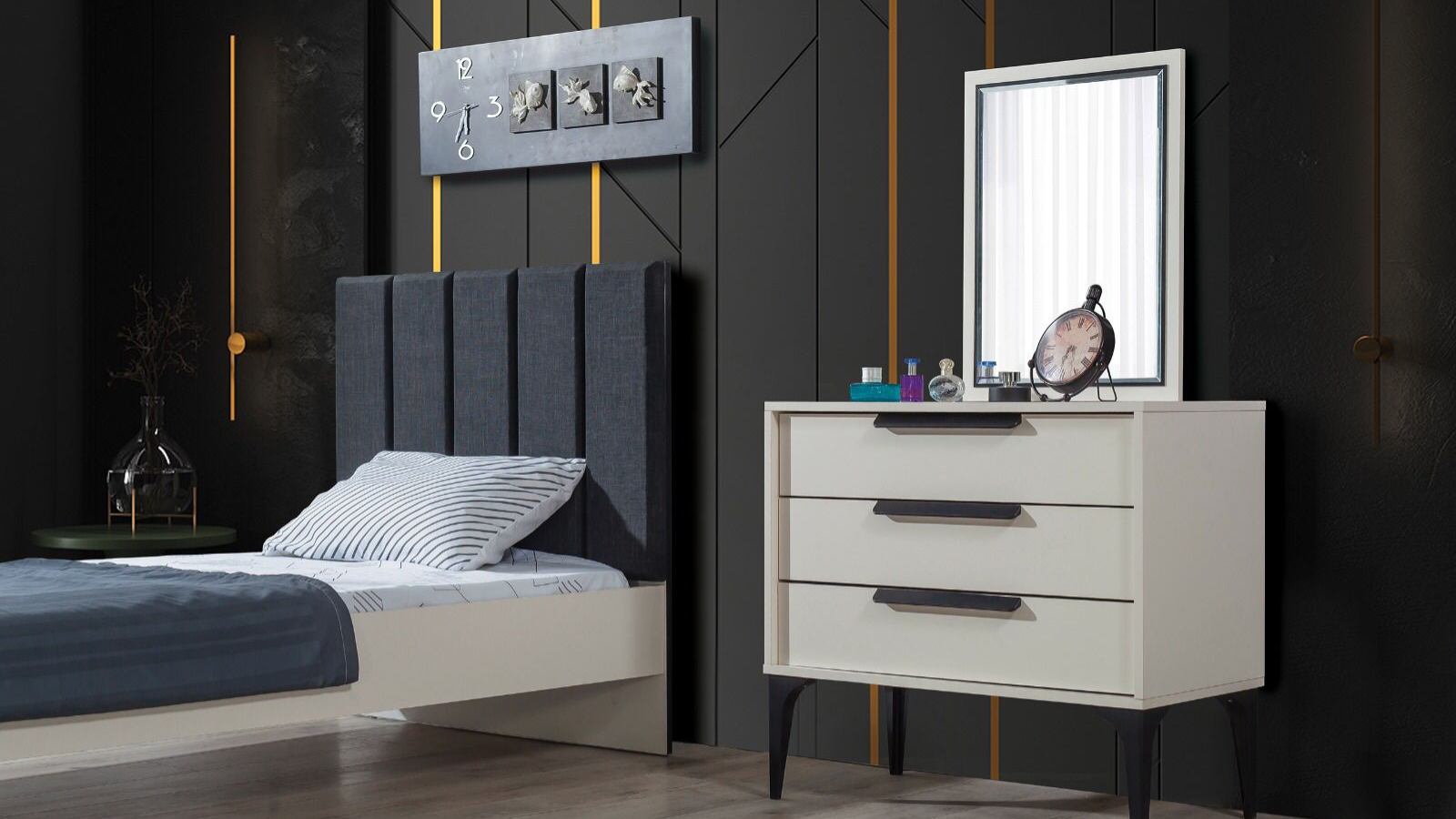 - Kolezyum AY Genç Odası Çamaşırlık: Geniş çekmeceleri ile ek depolama alanı sunan çamaşırlık, hem işlevsel hem de dekoratif bir üründür. Odada zarif bir görünüm sağlar.