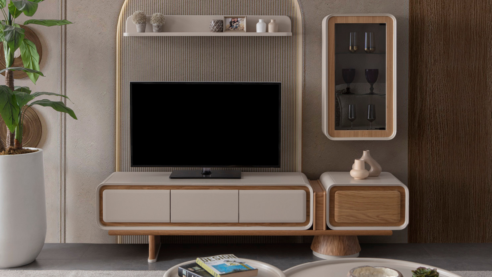 Evde en özel anlarınıza eşlik edecek Latte TV Ünitesi ile salonunuzu sade ve estetik bir tarzla donatın.. Şık tasarımı ve işlevsel özellikleriyle dikkat çeken Latte TV Ünitesi, hem salonlarınızda keyifle izlemenizi sağlayacak hem de evinizin dekorasyonunu tamamlayacak.