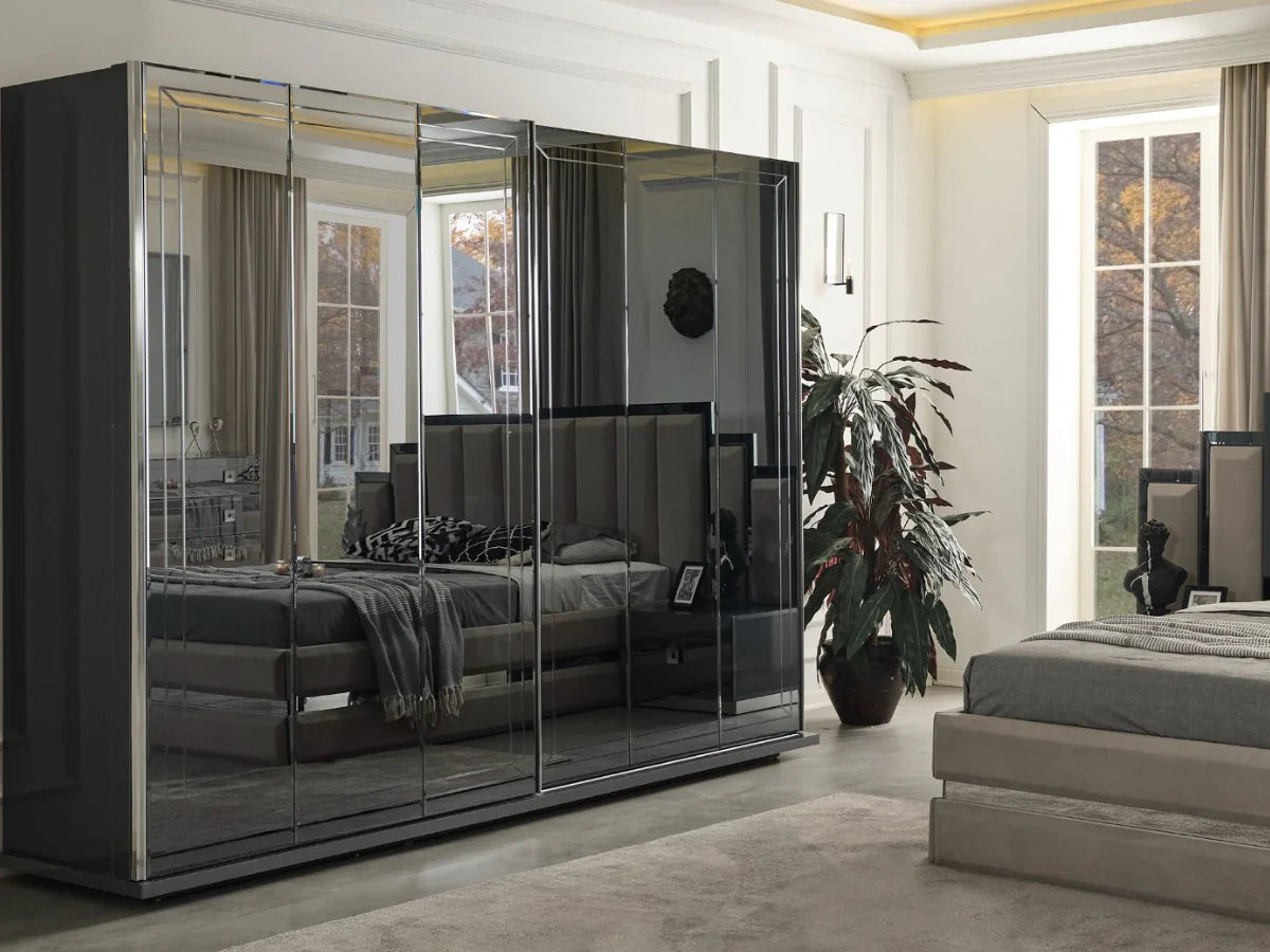 Lotus Yatak Odası, zarif tasarımı ile göz kamaştırır. Şifoniyer ve komodinlerdeki ince işlemeler, aynaların şık çerçevesi ve karyolanın başlığındaki detaylar, yatak odasına sofistike bir hava katıyor.