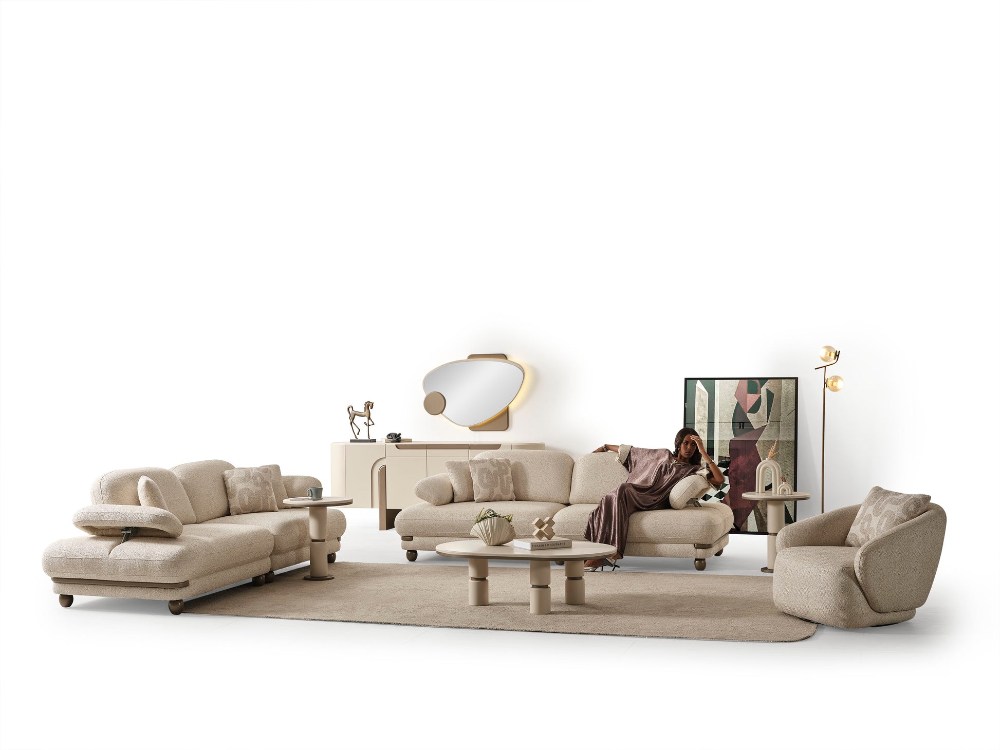 MOKKA Koltuk Takımı, göz alıcı tasarımı ile evinizin odak noktası olacak. Odanıza şıklık ve zarafet getirirken, aynı zamanda işlevselliği de unutmamıştır. Fonksiyonel özellikleri sayesinde oturma deneyiminizi maksimum seviyeye çıkarır.