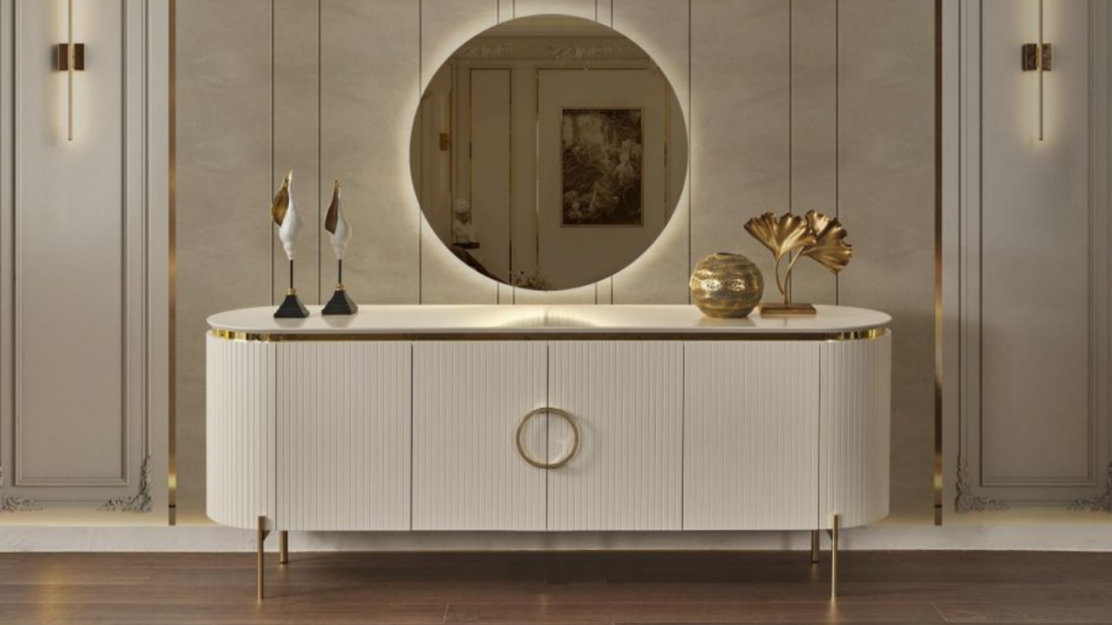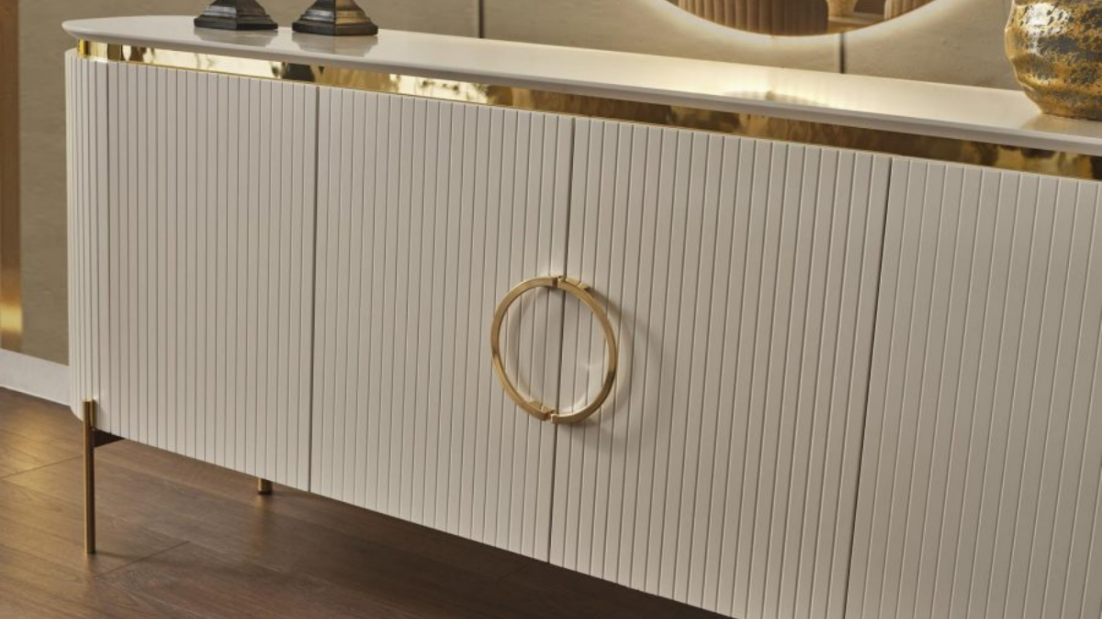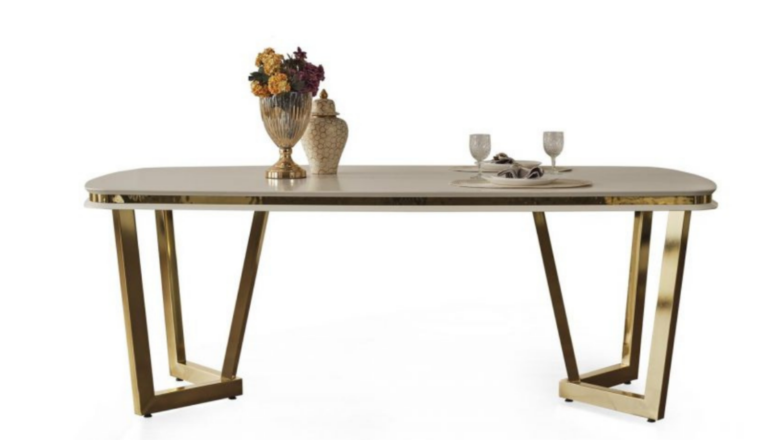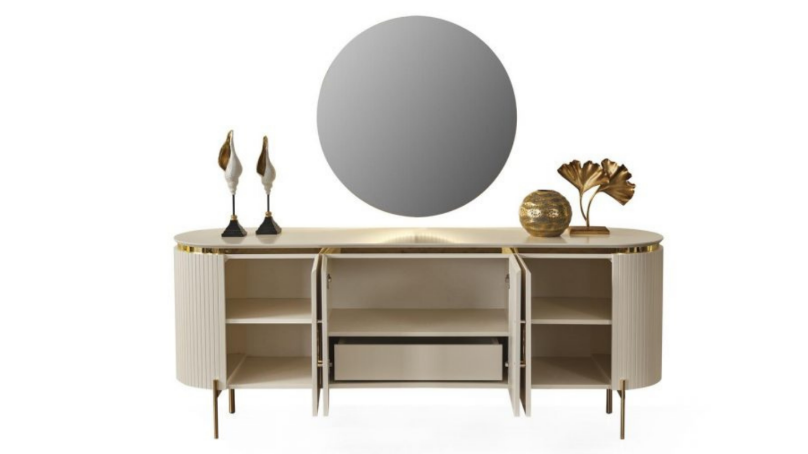 TESLA Yemek Odası, şıklığının yanı sıra fonksiyonelliği de ön planda tutuyor. Konsol ve duvar aksesuar ayna, kullanışlı depolama alanları sağlayarak ev düzeninize katkıda bulunur. Şık detaylar ve gold detaylarla buluşan lüks tasarımı, yemek alanlarınıza sofistike bir hava katıyor.