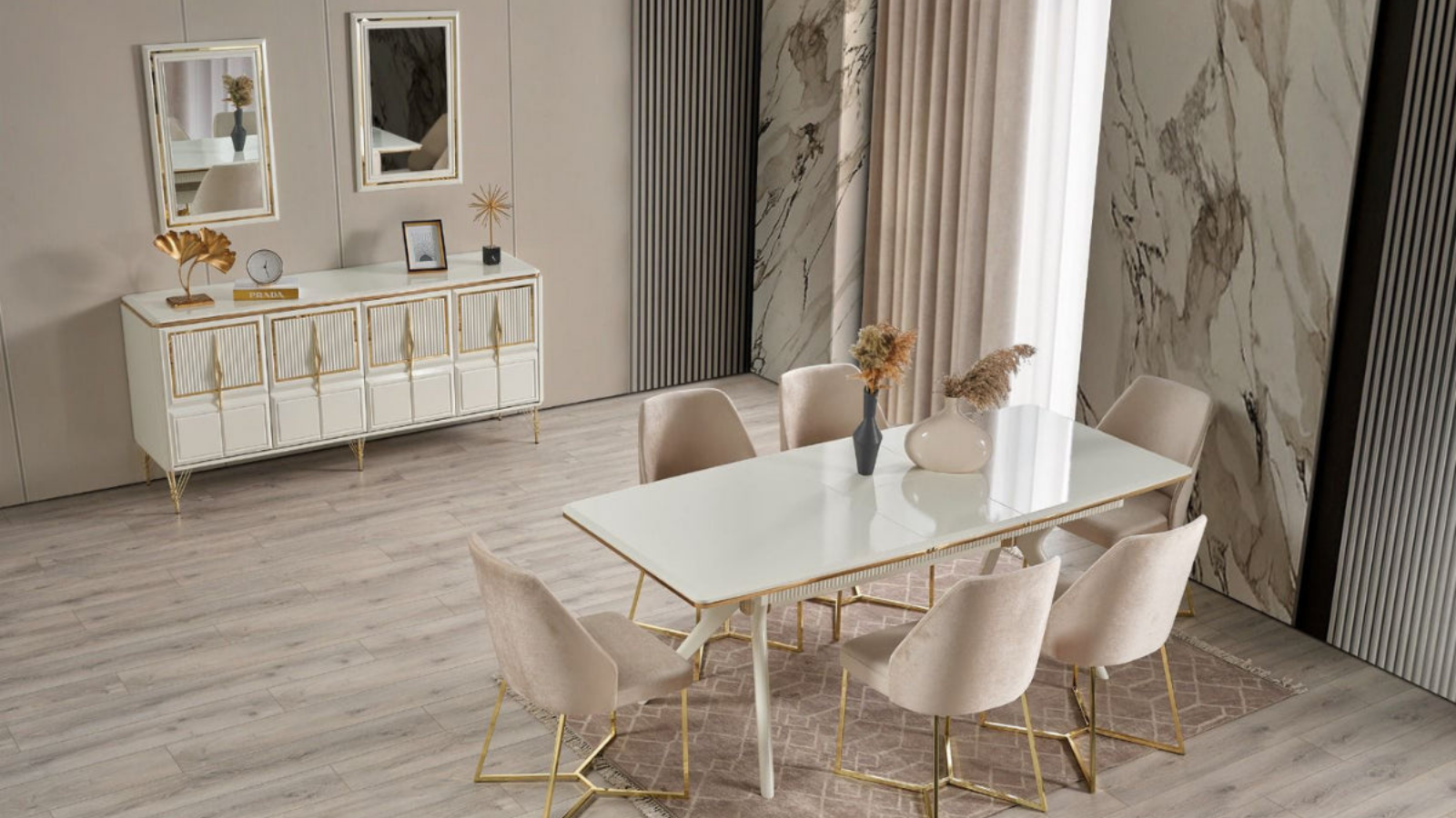 🪞 Konsol Aynası: Takımın tamamlayıcı parçası olan konsol aynası, yemek alanınızı daha ferah ve aydınlık gösterir. Zarif çerçevesiyle dikkat çeken ayna, şıklığın vazgeçilmez bir parçasıdır.